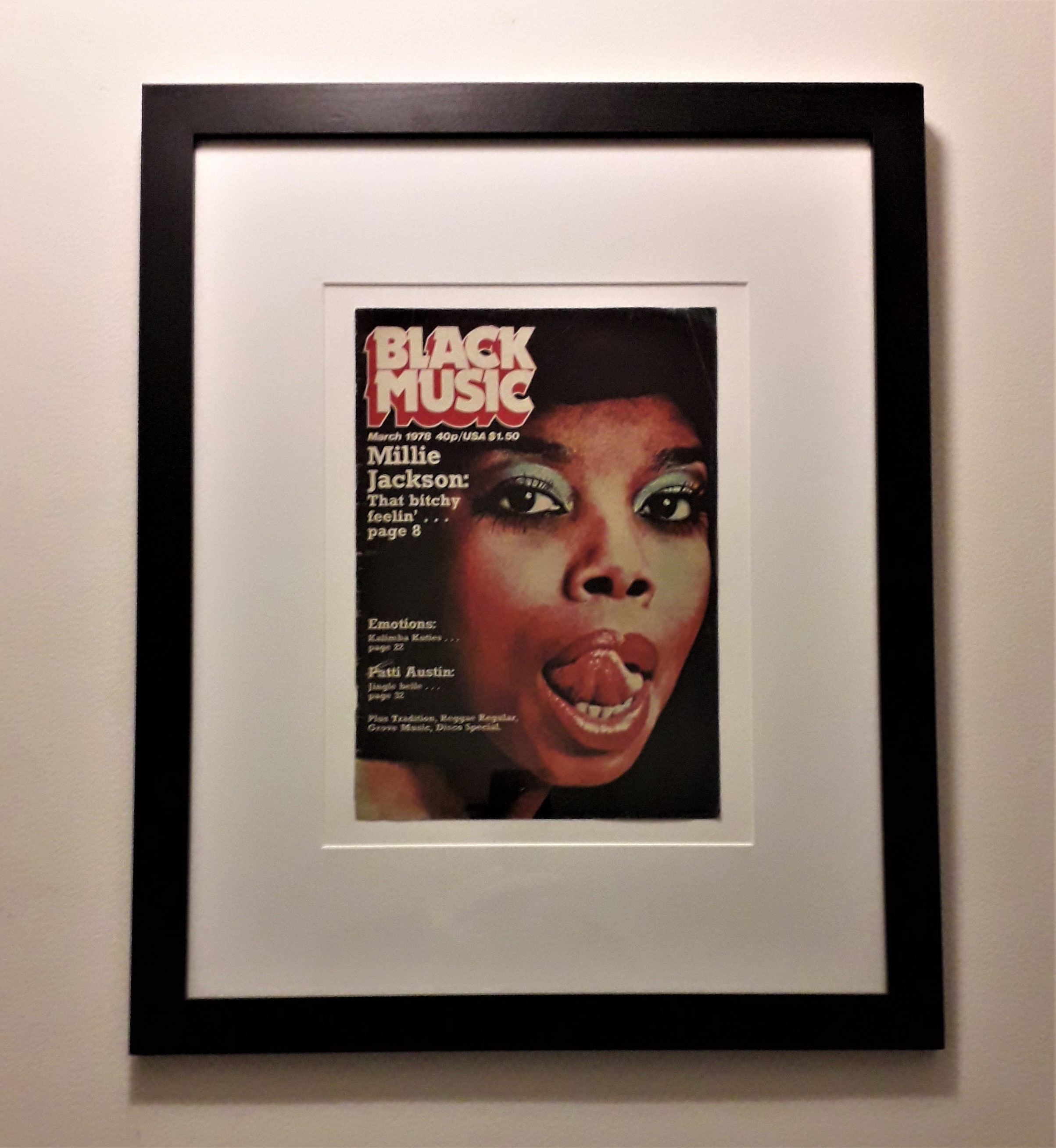 I have a number of vintage magazine covers from various music publications – a few more examples can be seen below – let me know what you’re interested in and if I don’t have something to tickle your fancy I will endeavour to find it. Most items are from the 60’s, 70’s and 80’s but I do dabble in other decades so please enquire. Just to emphasise, these are music magazines – I don’t do Soldier of Fortune, Country Life or anything naughty …. apart from a Millie Jackson cover of Black Music magazine that may, in some circles, be considered a touch fruity. I put these in a black frame with a mount – either 20 x 16 inches or 18 x 14 inches – moulding is 2cm wide x 1.5cm deep. Prices vary slightly but will be close to £45 – 65