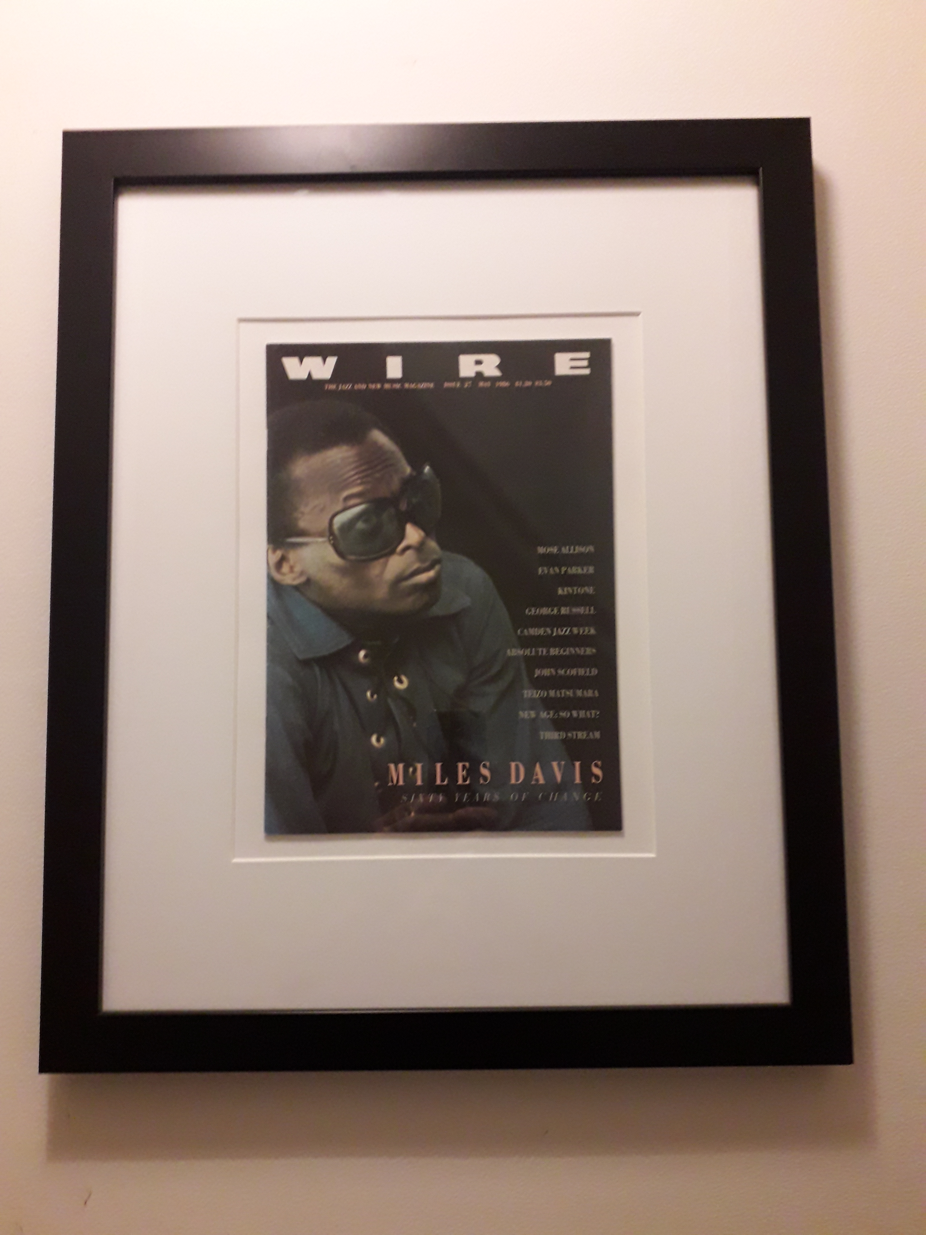 Wonderful Jazz Journal cover featuring Miles Davis from 1970. 18 x 14 inch frame. All mounts, tapes and backing card are acid free. By the way, I haven’t framed this yet – I’ve tried to be clever and photoshop the sheet into a blank frame but as my desire exceeds my skill it’s not quite centred – when I actually frame it it will be much better … promise.