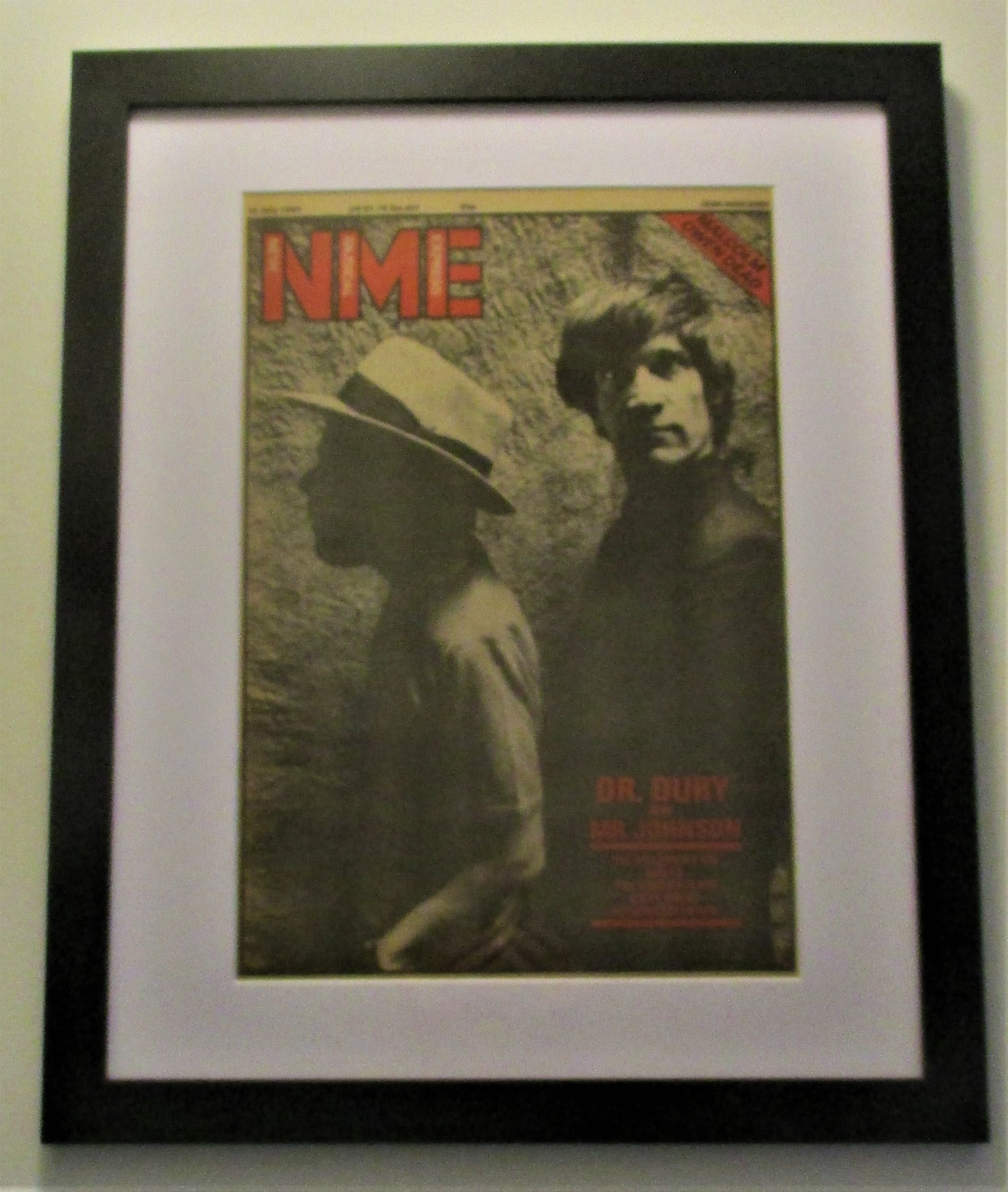 Fantastic NME cover from July 1980 – Dury and Wilko. I love this cover …. hence framing it and trying to sell it to you. Two legends of the era from two great bands …. although this picture was from 1980 by which time Wilko had left/been kicked out of Dr Feelgood and was now playing with the Blockheads. 20 x 16 frame