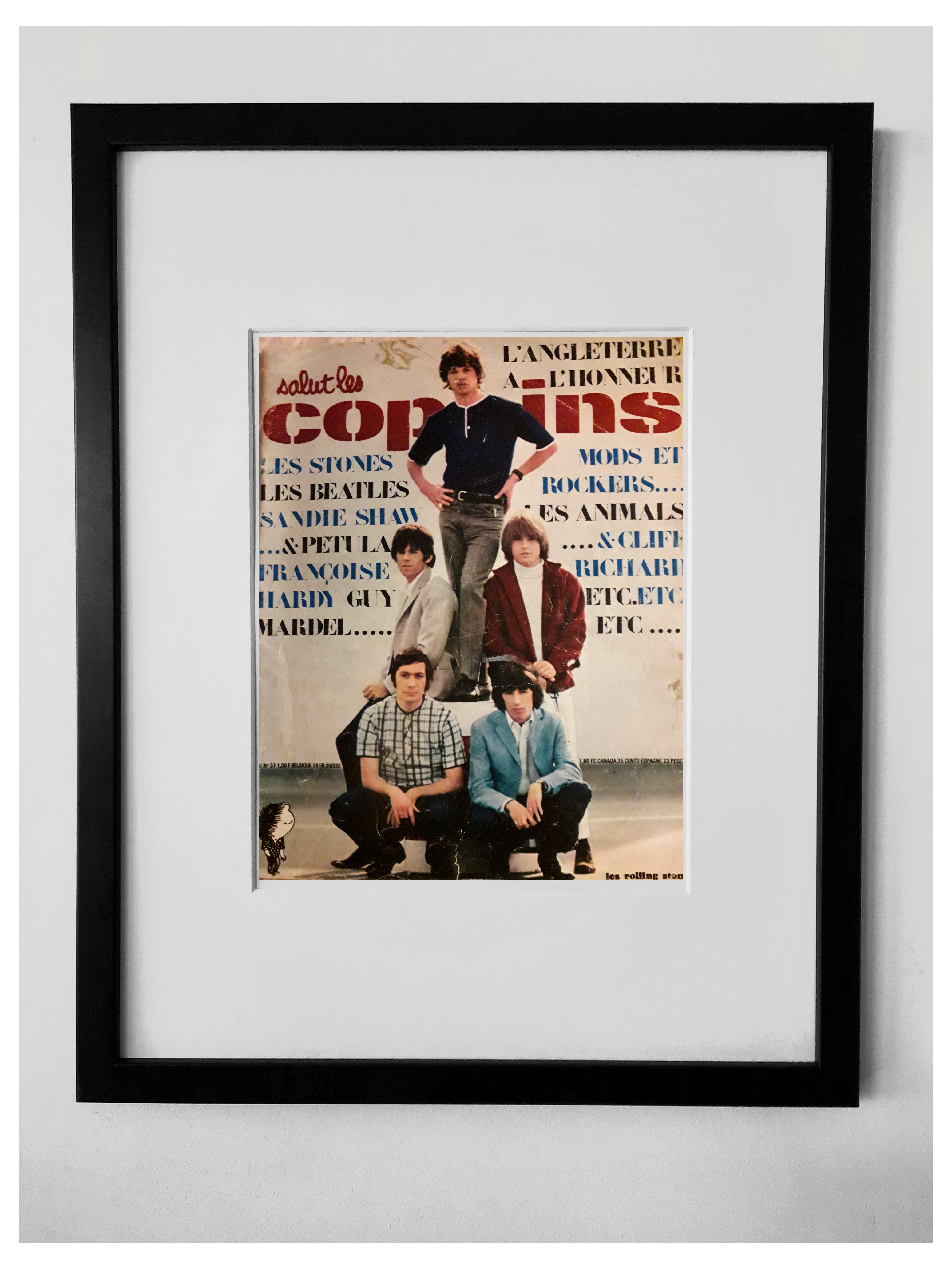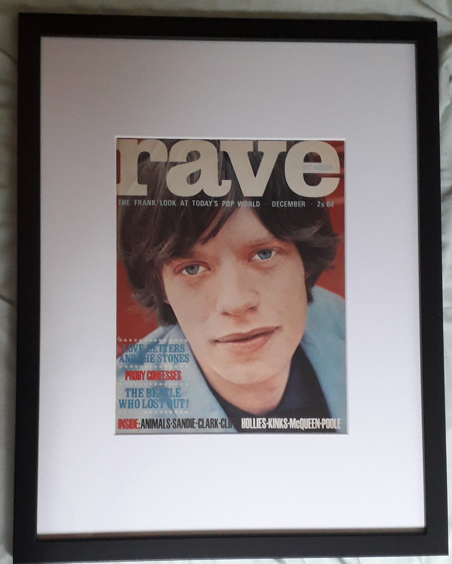 1964 Rave magazine cover featuring Mick Jagger looking …… what’s the word …. swoony … no … doe-eyed ………. well anyway, it’s got Mick Jagger on it. 18 x 14 frame.