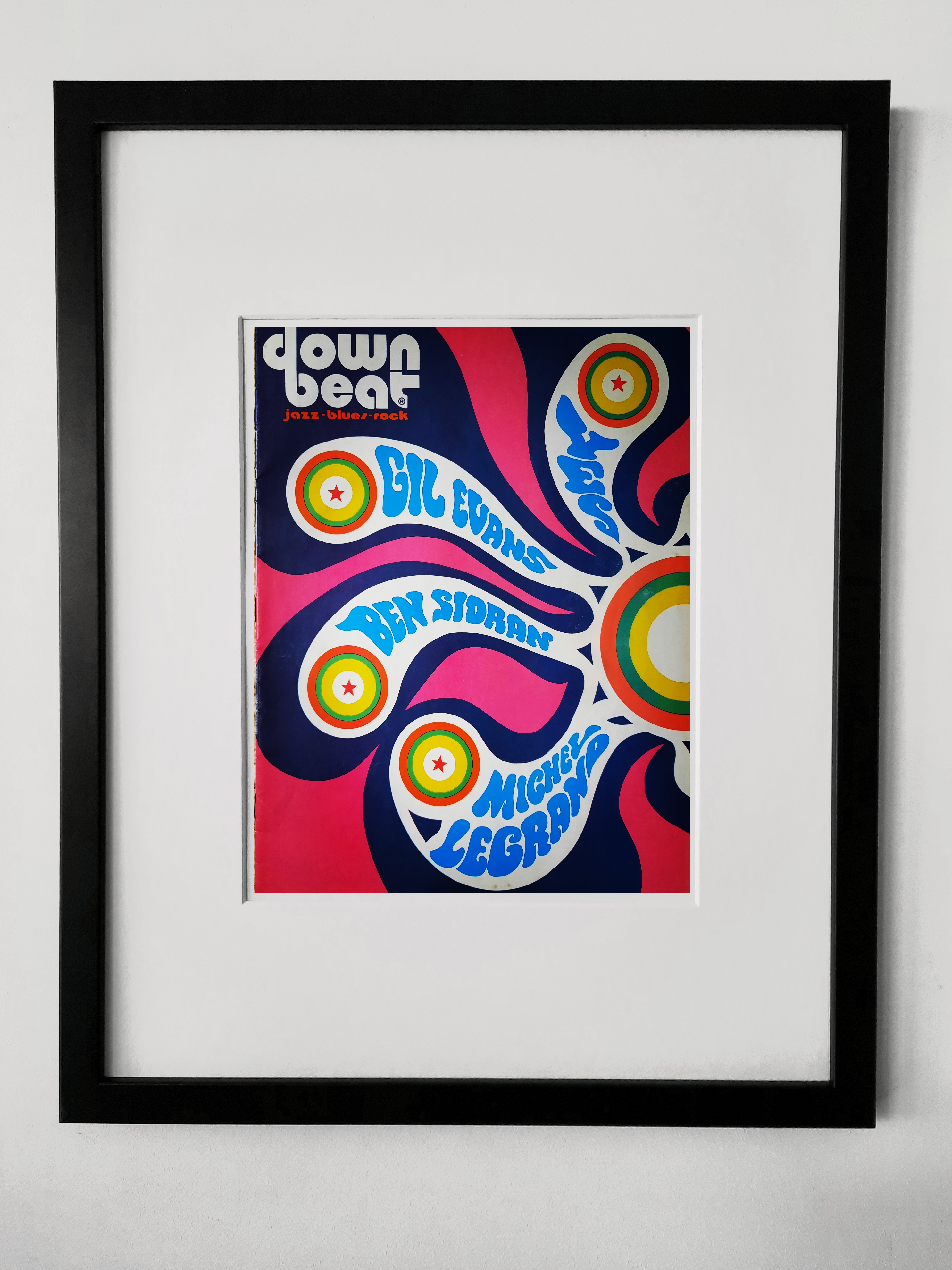 Wonderful cover for this May 1974 Down Beat magazine – at the risk of sounding like an old hippy, it’s groovy …. not that there’s anything wrong with old hippies. 18 x 14 inch frame. All mounts, tapes and backing card are acid free. By the way, I haven’t framed this yet – I’ve tried to be clever and photoshop the sheet into a blank frame but as my desire exceeds my skill it’s not quite centred – when I actually frame it it will be much better … promise.