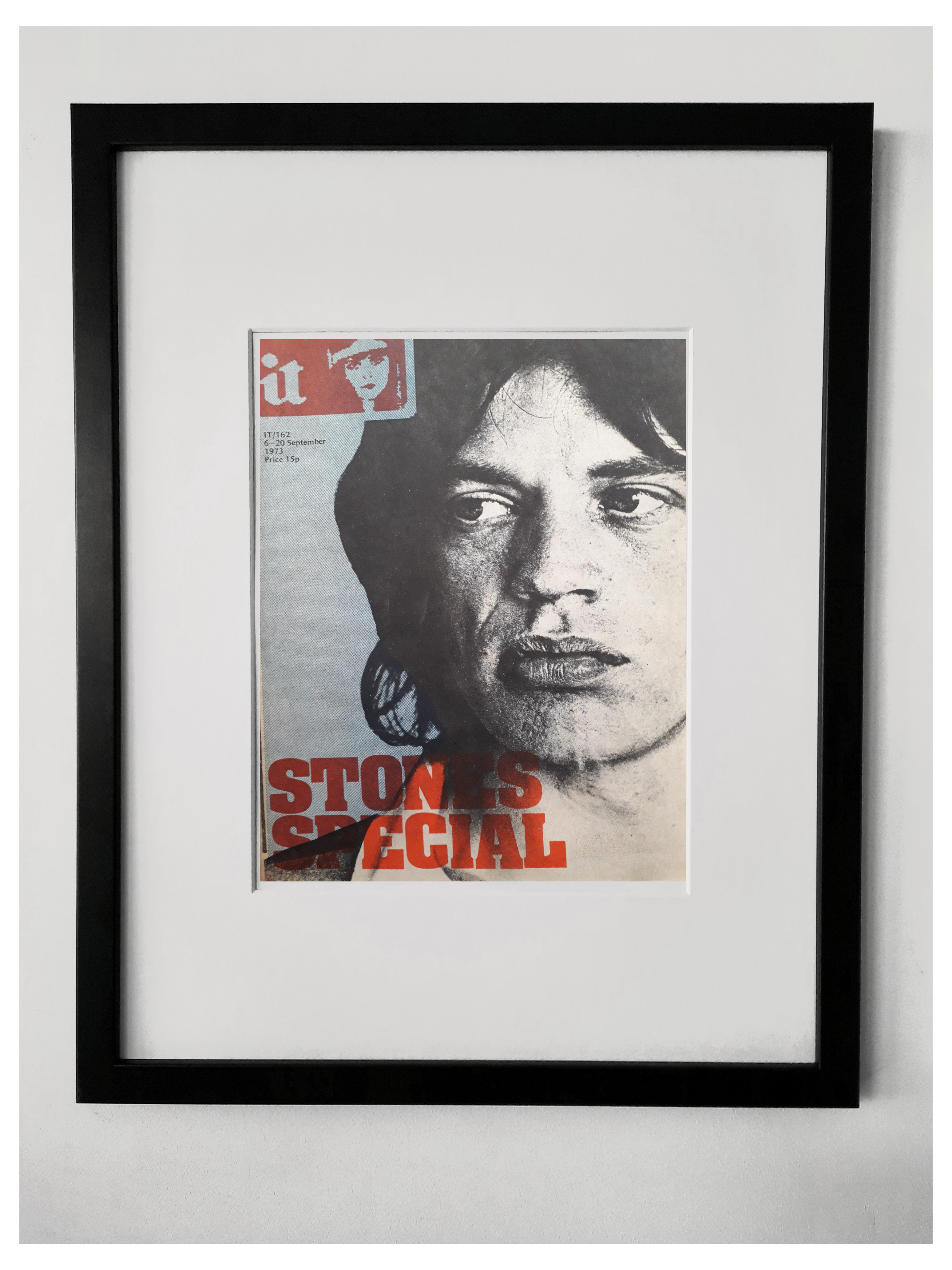 Vintage 1973 cover of IT magazine. 18 x 14 inch frame. All mounts, tapes and backing card are acid free. By the way, I haven’t framed this yet – I’ve tried to be clever and photoshop the sheet into a blank frame but as my desire exceeds my skill it’s not quite centred – when I actually frame it it will be much better … promise.